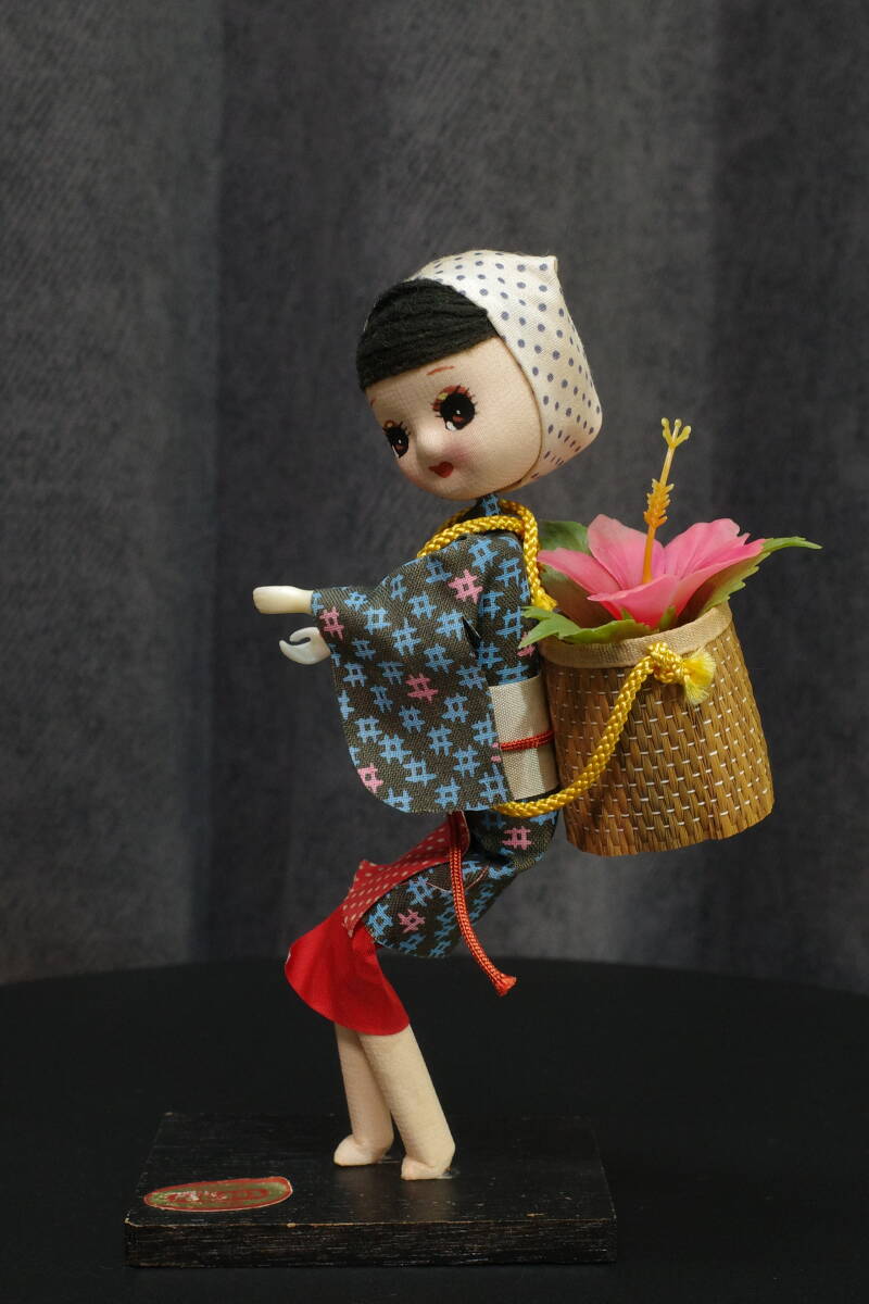 - [昭和レトロ] 骨董 古民家 雑貨 お土産 かすり着物 ハイビスカス娘 女の子 人形 インテリア