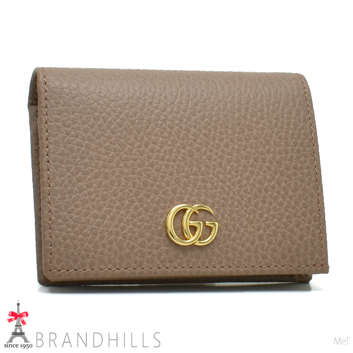 > グッチ 財布 二つ折り レディース GGマーモント レザー ピンクベージュ コンパクト 456126 GUCCI 極美品