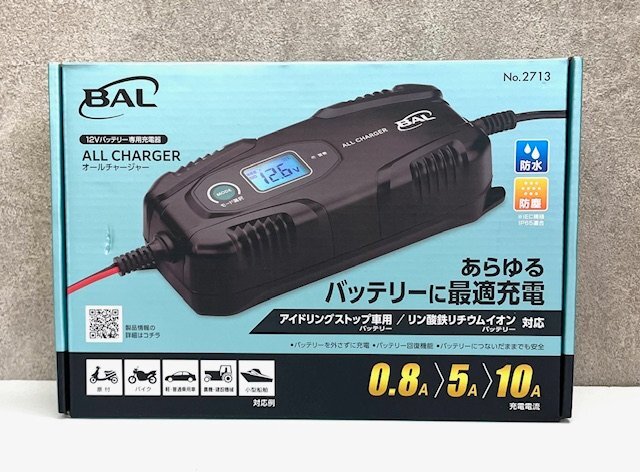 - 1K801★ 未使用品 BAL オールチャージャー 2713 ★ 12Vバッテリー専用 充電器 車 バイク 農耕機【ニューポーン】