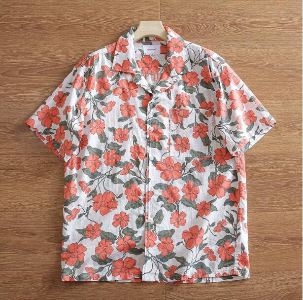 - 新入荷大人気M 赤 新品 リネン混 アロハシャツ 半袖 メンズ 花柄 清涼感 オープンカラー パナマシャツ コットン 開襟 春夏 盛夏 サマー