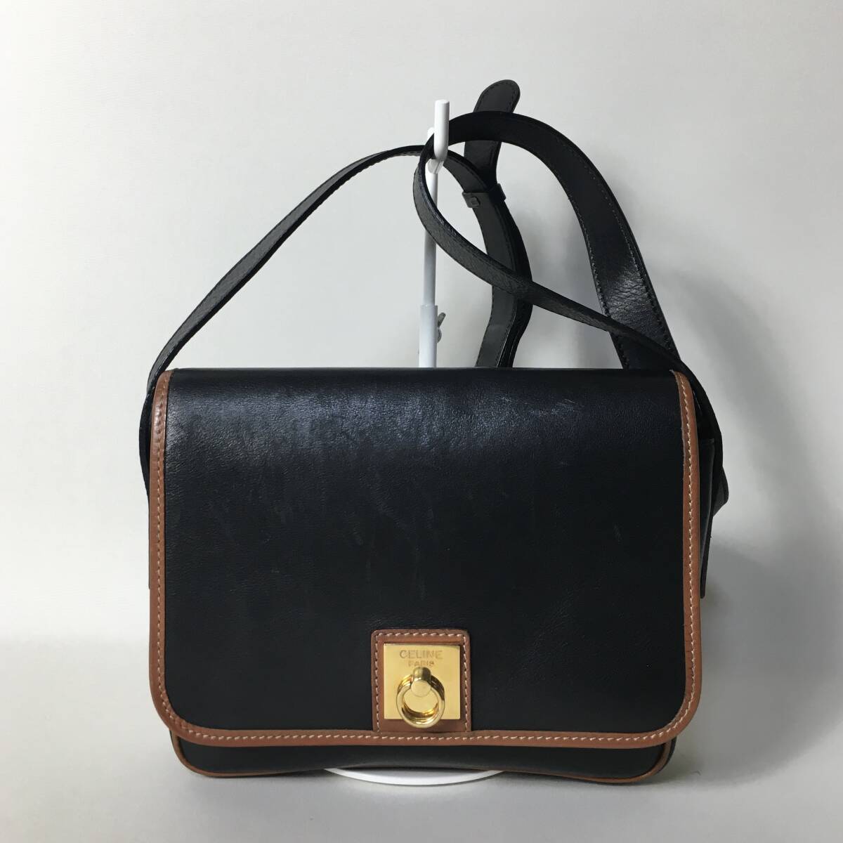 - 76B248|美品|セリーヌ ショルダーバッグ ブラック ガンチーニロゴ金具