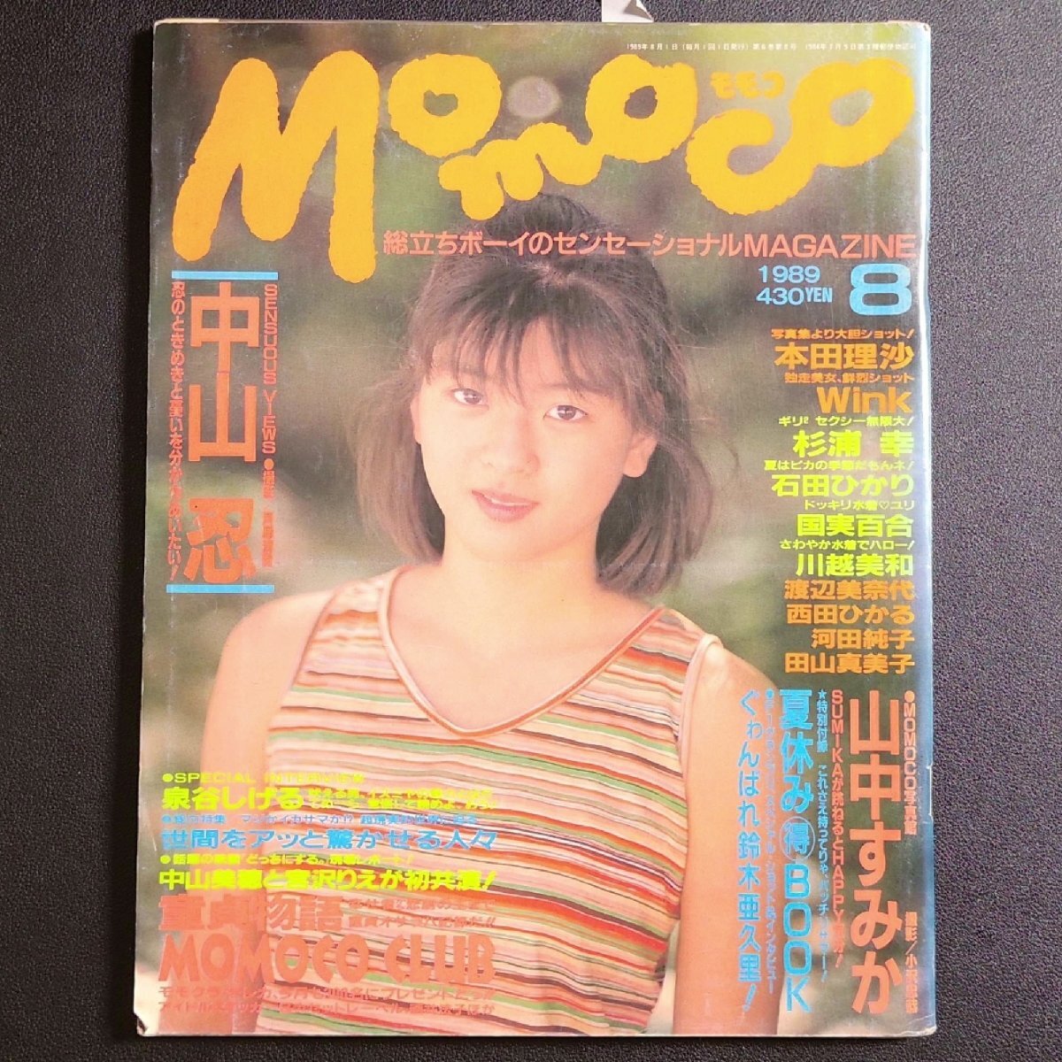 > Momoco モモコ 学研 1989年 昭和64年8月1日発行 8月号 中山忍 本田理沙 Wink 石田ひかり 国実百合 川越美和 渡辺美奈代 西田ひかる