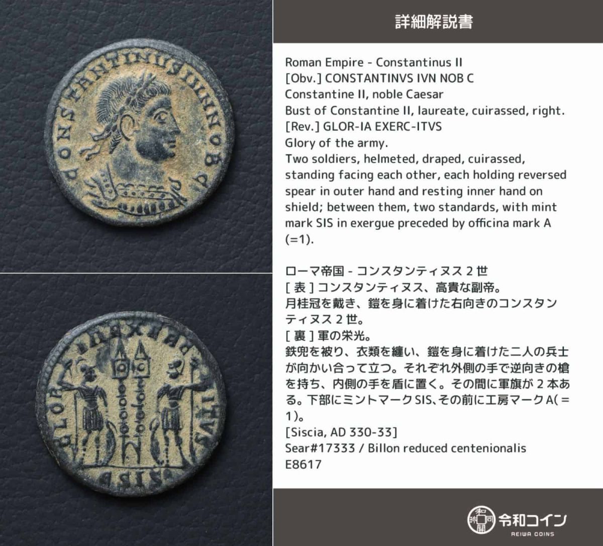 > *[令]コンスタンティヌス2世 古代ローマコイン【詳細説明カード付】センテニオナリス・ビロン貨 ギリシャ 銀貨[8617]7n6