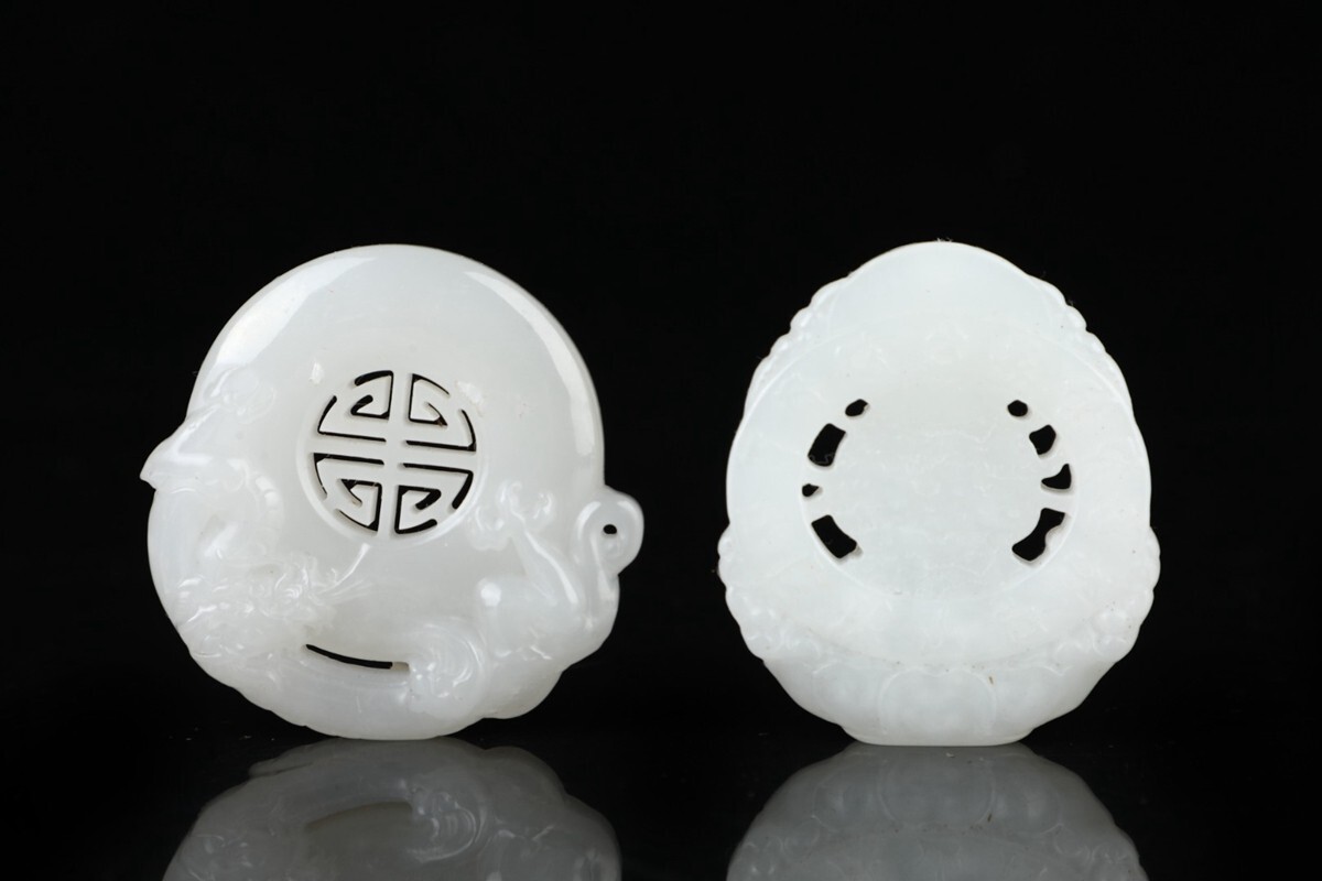 - 「清時代 和田玉 白玉彫り 祥龍 仏像 玉牌一対」極細工 裝身具 賞物 中国古美術 旧蔵出
