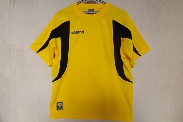 - De la solana/半袖Tシャツ/クルーネック/速乾性素材/袖・身頃脇寄り黒切替配色/スポーツ/黄/イエロー/Mサイズ(7/15R7)