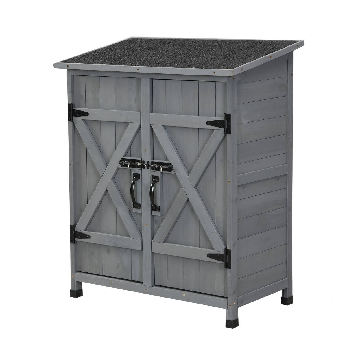 - 物置き 木製 収納庫 観音扉 ヨーロッパ風 ガーデニング用品 小屋 戸外収納庫 大型 屋外物置 棚 大型 ドア ベランダ 物置き 【グレー】