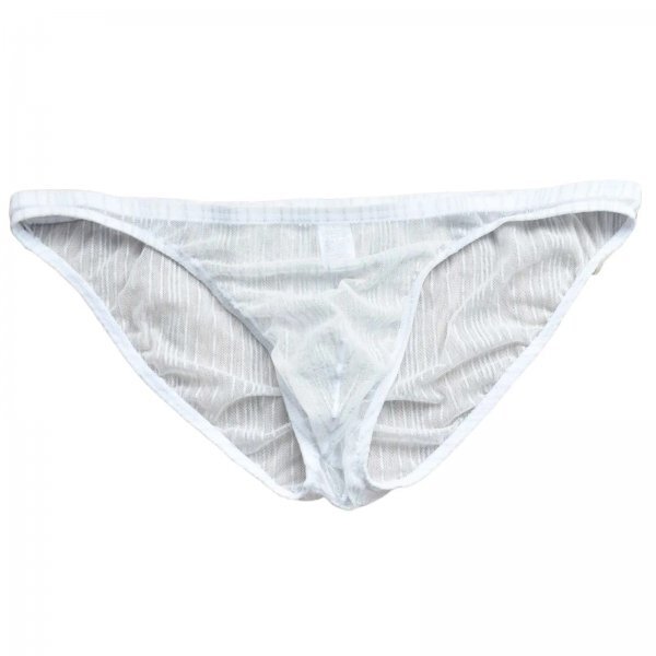 - メンズ ハーフシーム ストライプ シースルー メッシュ ラメ フルバック ビキニ ホワイト 日本S~Mサイズ