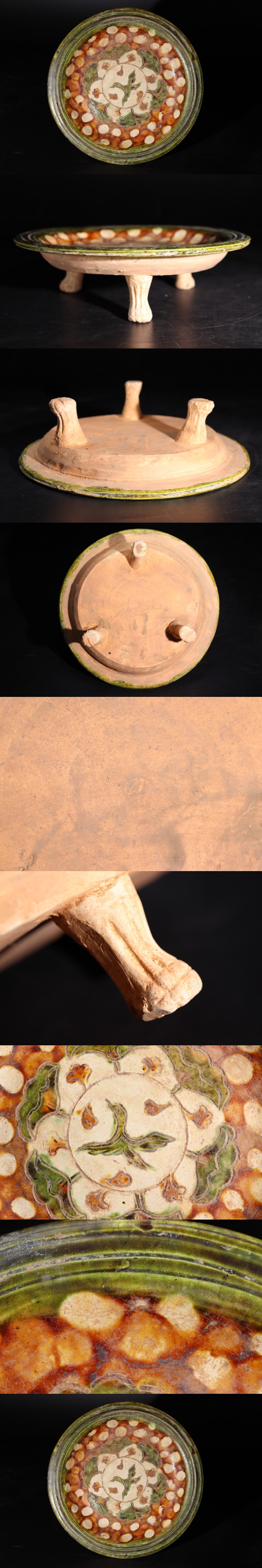 - 時代 三彩 鳥文 脚付 皿 / 中国美術 茶器 鉢 煎茶道具 煎茶飾 検索: 唐三彩 .G2017