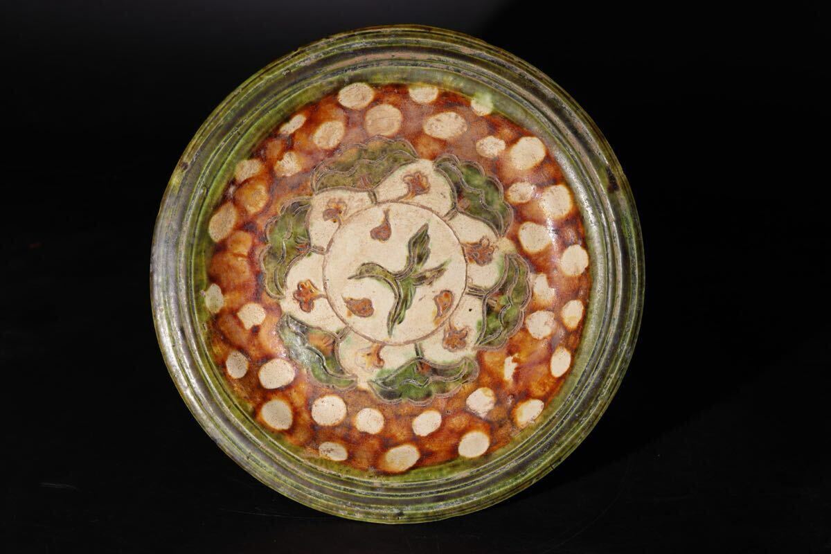 > 時代 三彩 鳥文 脚付 皿 / 中国美術 茶器 鉢 煎茶道具 煎茶飾 検索: 唐三彩 .G2017