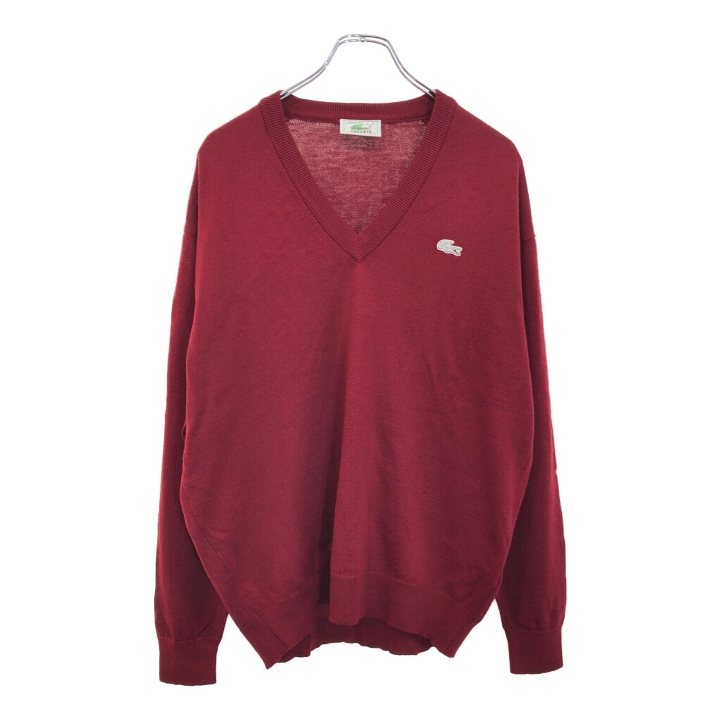> 90年代 スペイン製 LACOSTE ラコステ Vネック ウールセーター ワインレッド(メンズ 6)中古 古着 U7381