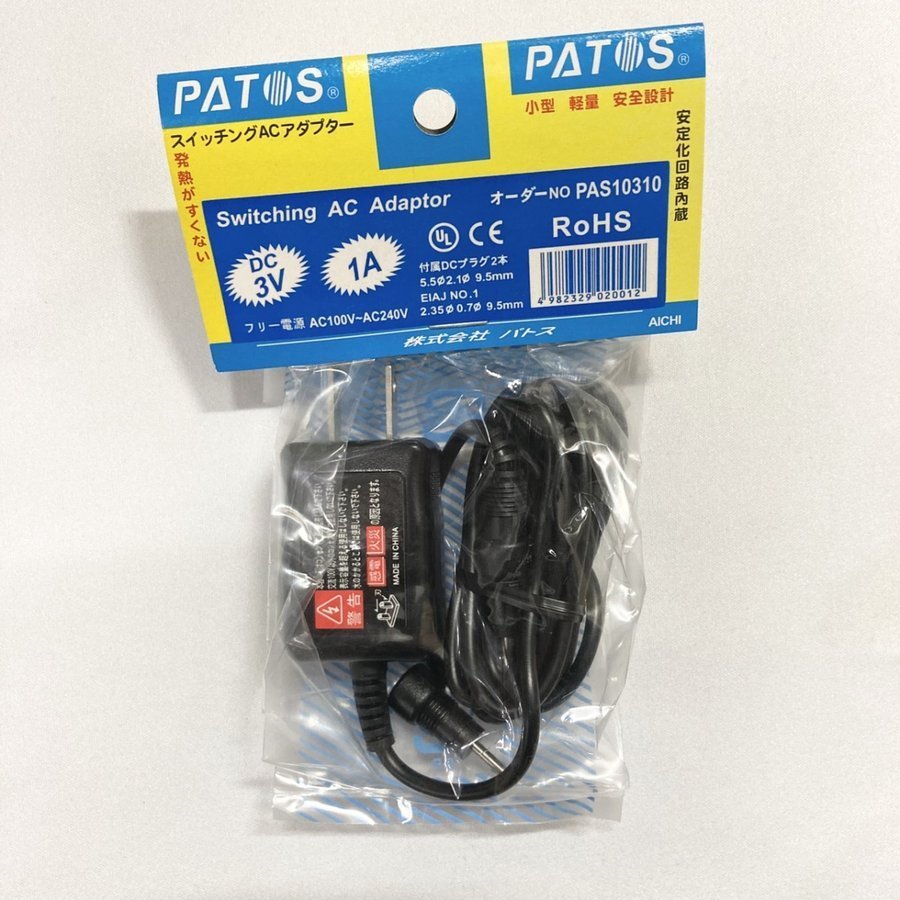 - 【安心の国内メーカー品】PATOS(パトス) 汎用スイッチングACアダプター DC3V1A PAS10310 直流安定化出力電源【PSE RoHS対応】返品交換不可