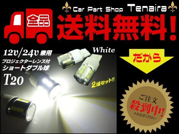 > 12V 24V 兼用 T20 ダブル球 白 LED ショート 16LED ホワイト 拡散 プロジェクターレンズ ブレーキランプ テール メール便送料無料/4