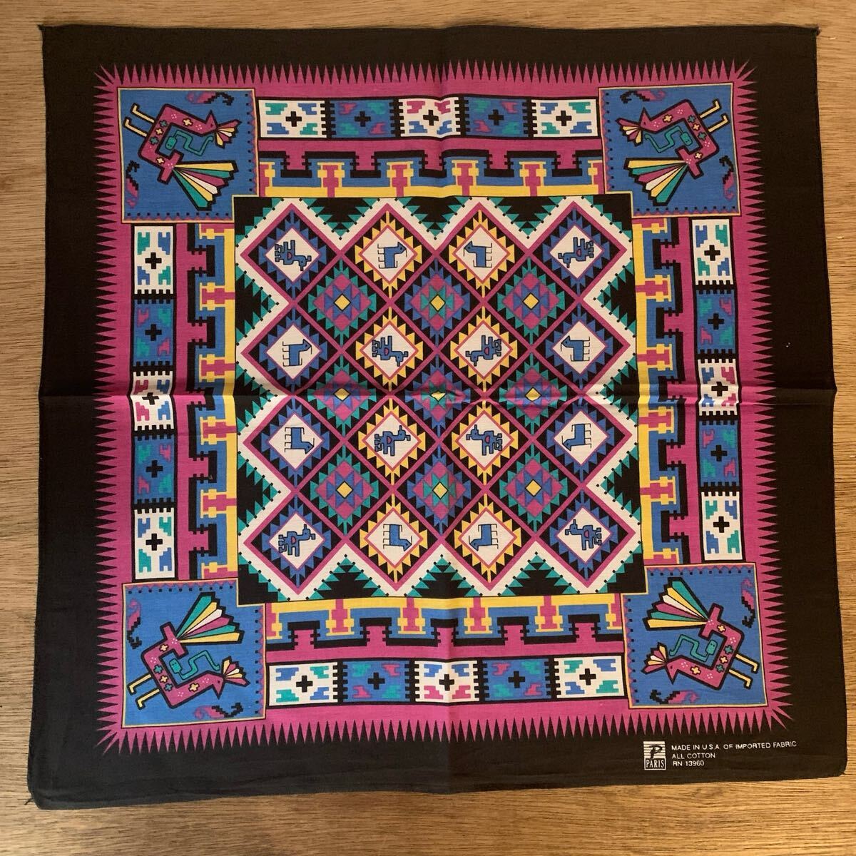 - 送料無料 Vintage バンダナ ネイティブ柄 ハンカチ アメリカ仕入れ USA製 アイテム 小物 コーデ ブラック 雑貨 ヴィンテージ A1793