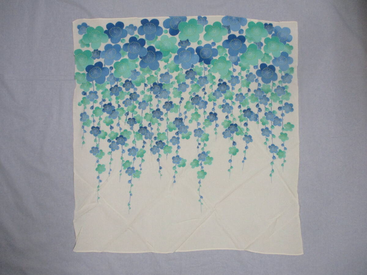 - ふじみやび ふじ柄・風呂敷 タテ・約69cm×ヨコ・約66cm 絹混 白・緑系 D-KT6286