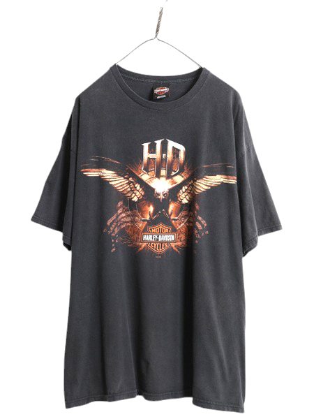 > 00s ハーレー ダビットソン 両面 プリント Tシャツ メンズ XL / 古着 オールド バイク イーグル ファイヤー グラフィック 大きいサイズ 黒