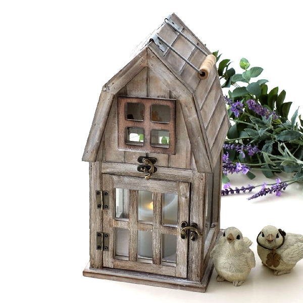 > ランタン 木製 おしゃれ ウッド ガラス オブジェ 置物 LEDキャンドルホルダー ヴィラハウス ランタン 送料無料(一部地域除く) mty2490