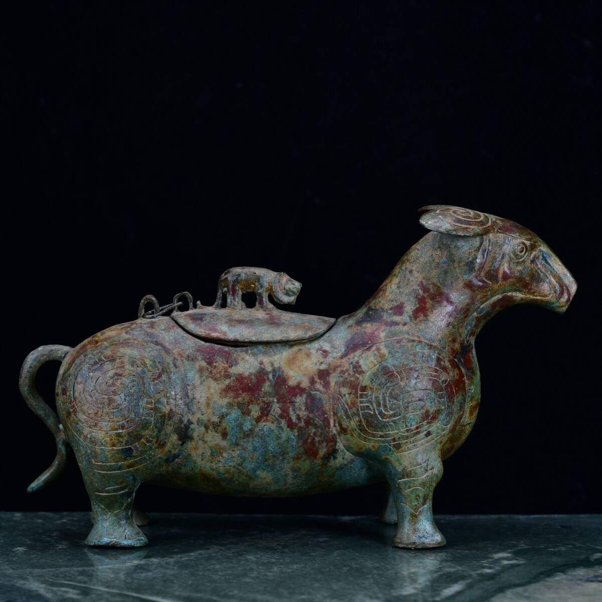 - ▽鴻▽ 漢 青銅製 羊尊 青銅器 置物 賞物 古賞物 古董品 時代物 稀少珍品 中国古玩 中国古美術