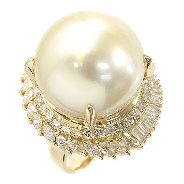 - 送料無料 本物 大粒パールダイヤモンドリング 指輪 K18YG 本真珠 白蝶真珠16.4ミリ ダイヤ1.14ct 8.5号 レディースアクセサリー 高級