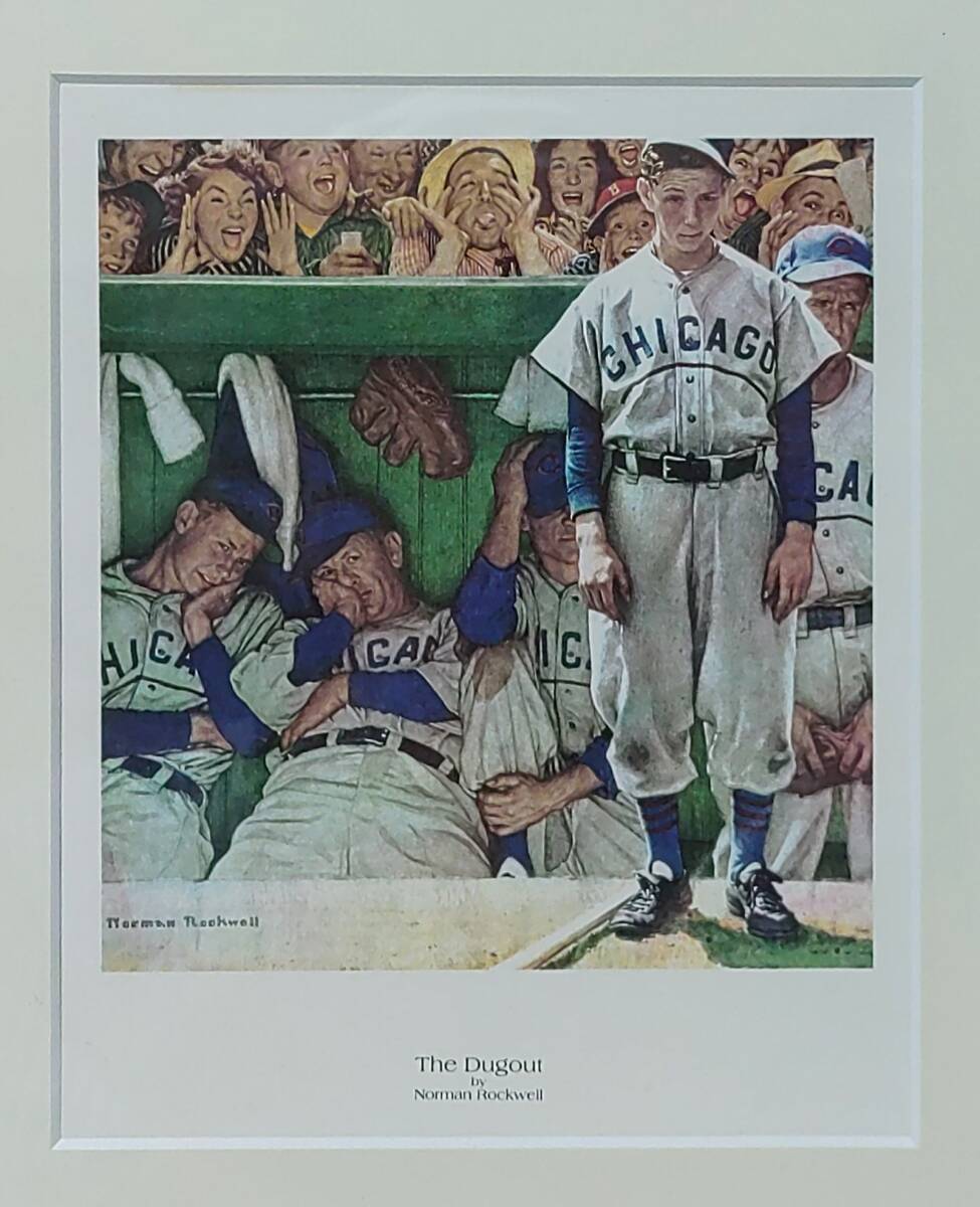 > 1997 額装品 Norman Rockwell ノーマン・ロックウェル 複製画『The Dugout』額実測外寸約22.4×27.5×2.5cm 箱付き※USED品/額に多少傷あり