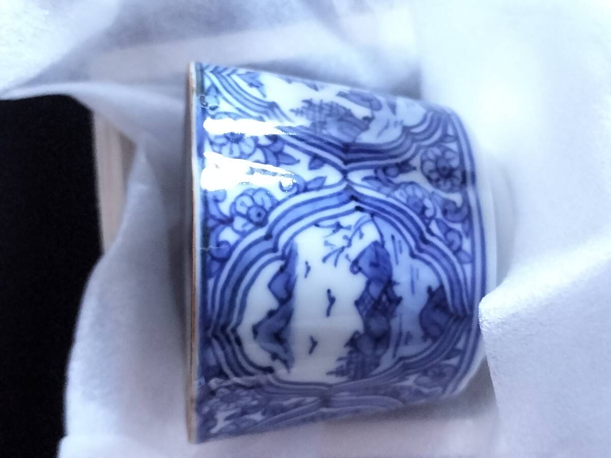 - 京焼 清水焼 ぐい呑 昭阿弥窯 梅型 染窓山水 GCS033
