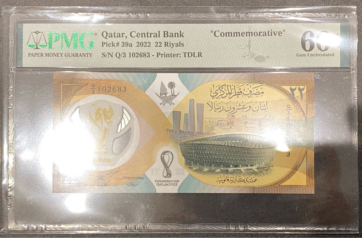- カタール 22 Riyals札 記念発行ポリマー紙幣 2022年 ”サッカーW杯” PMG EPQ66 未使用