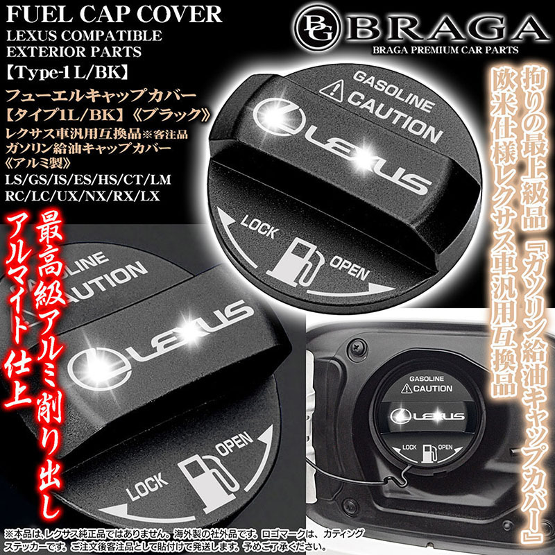 > LS460/600h/500/h/タイプ1L/BK/給油フューエル キャップカバー/アルミ製ブラック/レクサス車 互換品 カッティングステッカー/客注品/ブラガ