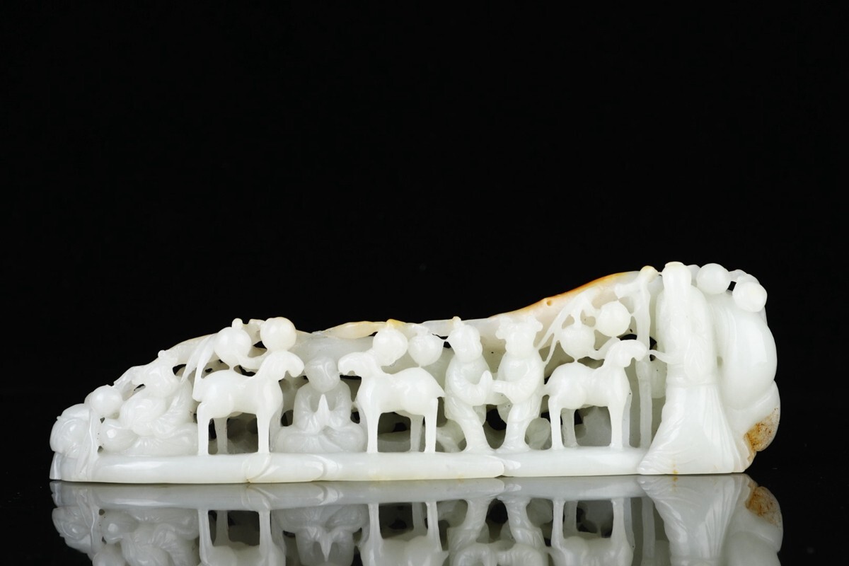 - 「清代 乾隆年製 和田玉 子料彫り 童子祝壽擺件」極細工 擺件 中国古賞物 古美術 旧蔵出