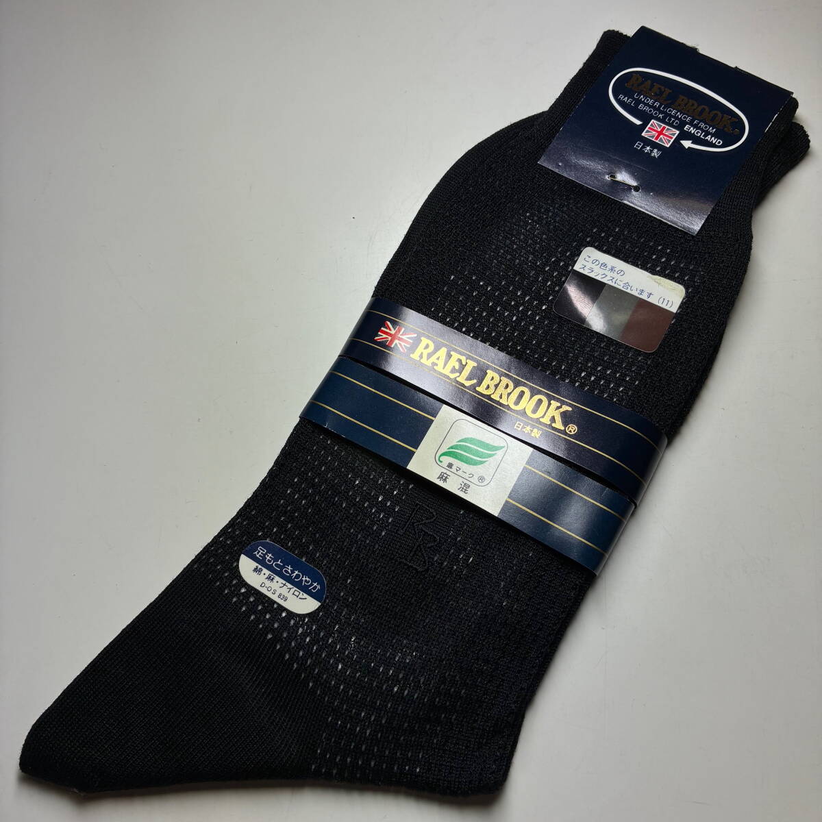 > ◆レトロ◆日本製 RAEL BROOK シースルー メンズ ビジネスソックス 網目状 麻混素材 25cm 黒/濃紺◆紳士靴下/ハイゲージ