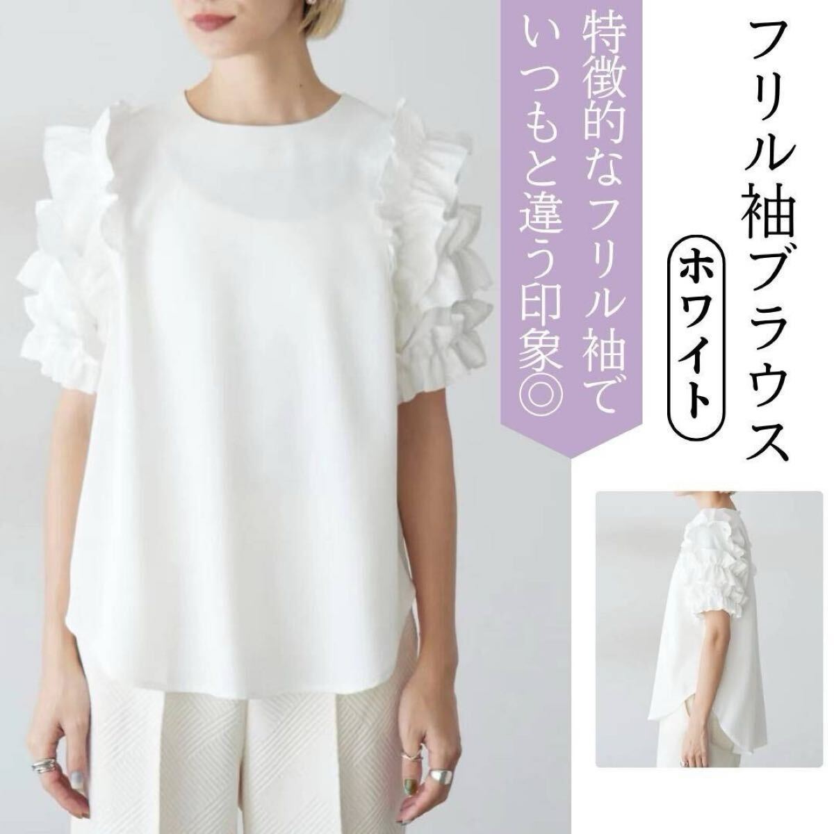 - 新品!フリル袖 ブラウス ホワイト 半袖 トップス 袖コンシャス ボリューム袖 上品