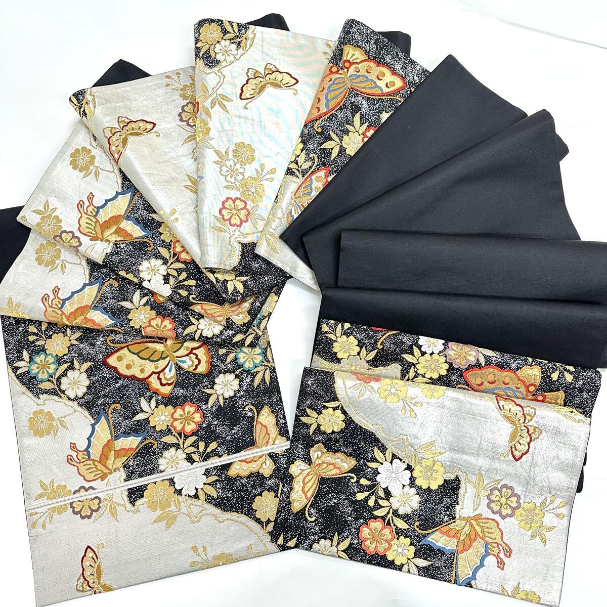> 【七福】c657 逸品 高級品 正絹 袋帯 六通 三松 蝶 金糸 銀糸 刺繍 豪華