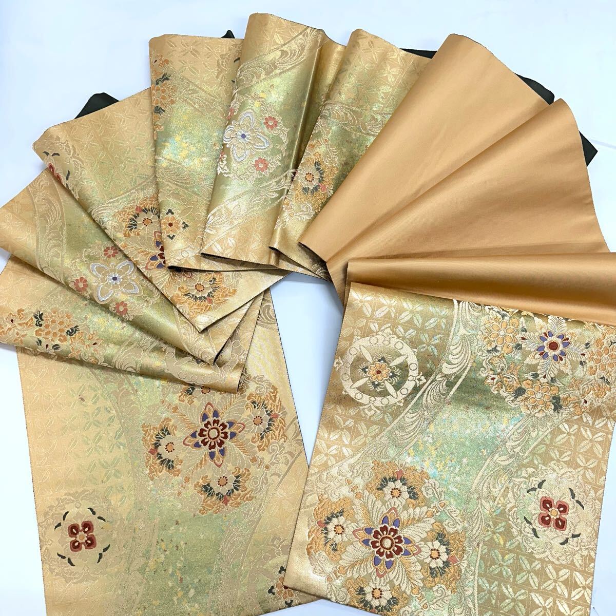 - 【七福】c660 逸品 高級品 正絹 袋帯 六通 華文 ゴールド 金糸 銀糸 刺繍 豪華