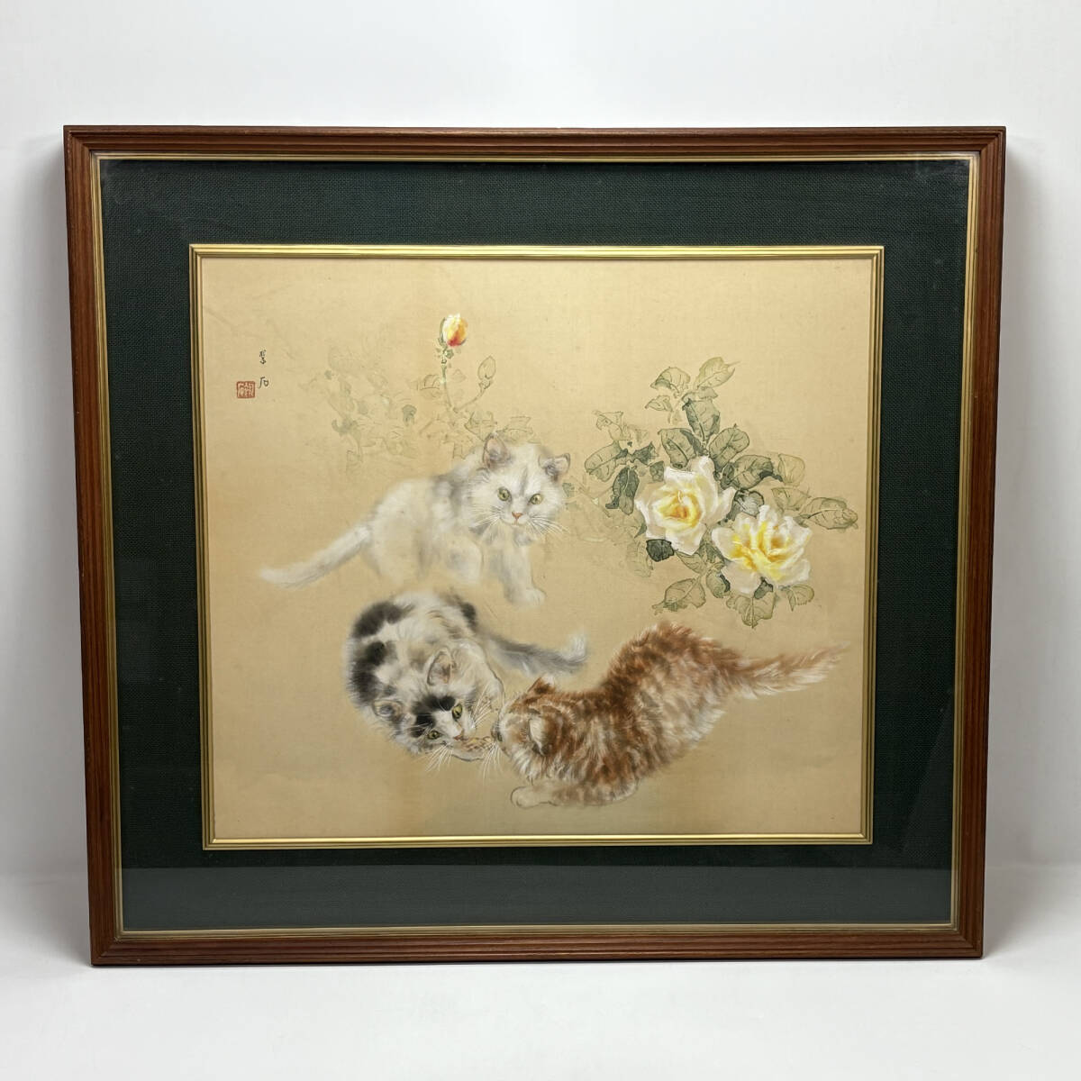 - 【真作】■ 大橋翠石 ■ 「子猫の図」日本画/額装 250718007