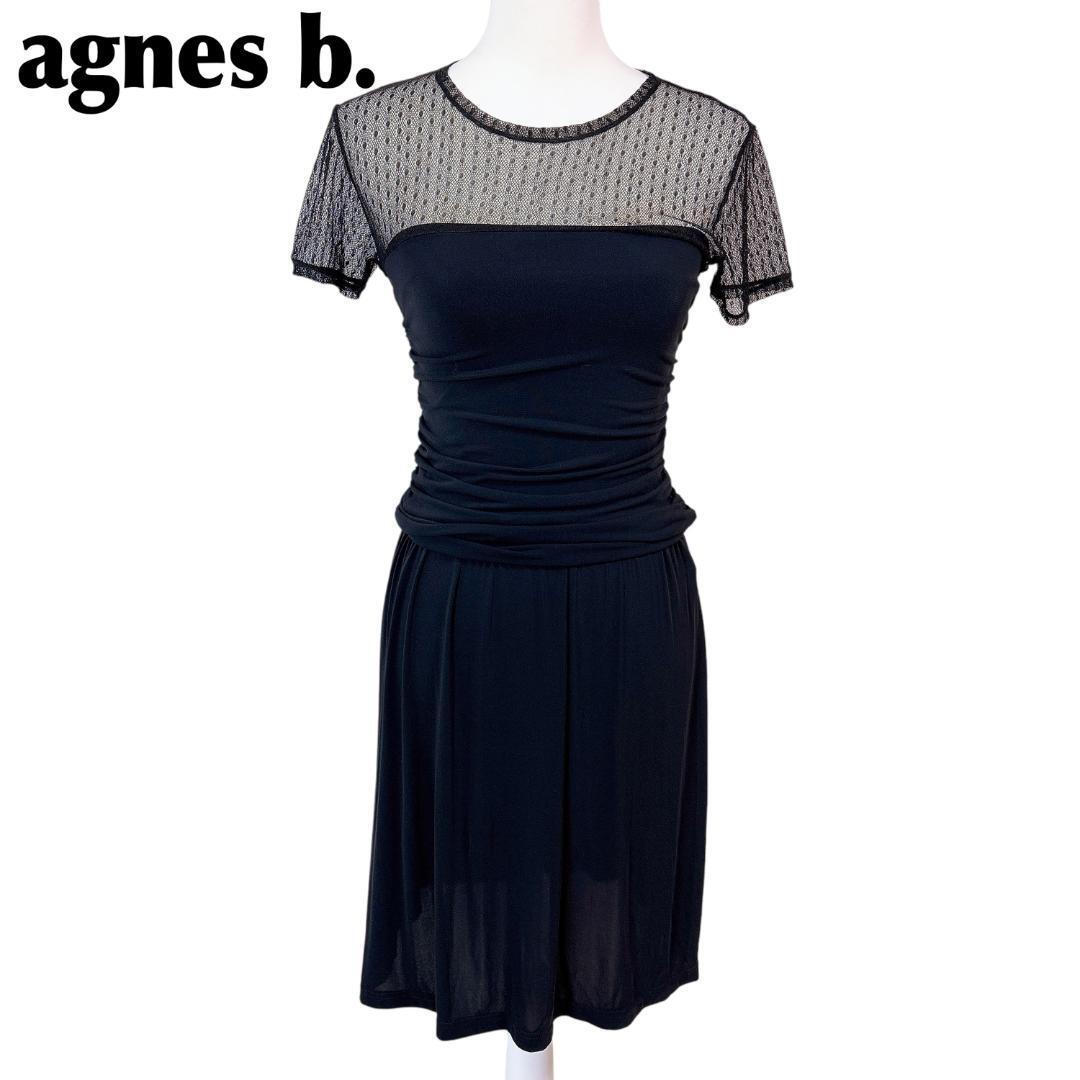 - 【美品】アニエスベー 半袖ドレスワンピース シアータイト 1 肩部分レース