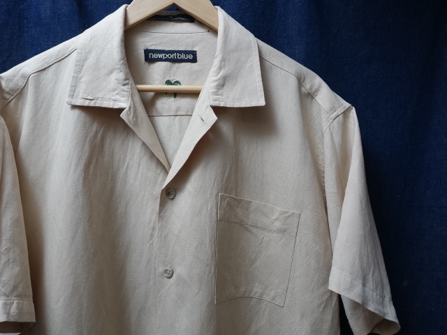 > SALE USA アメリカ 古着 newportblue 無地 半袖 リネン レーヨン シャツ M / ヴィンテージ ビンテージ / 2 ビッグ サイズ シルエット