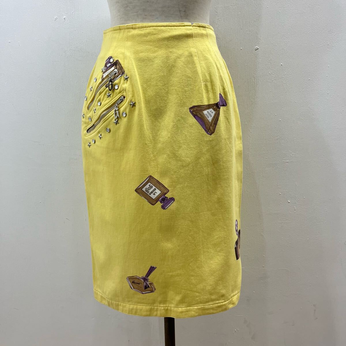 > 伊太利屋 総柄スカート 膝丈スカート 香水柄 スタッズ コットンスカート 日本製 黄色 イタリヤ GKITALIYA【レターパックプラス郵送可】V