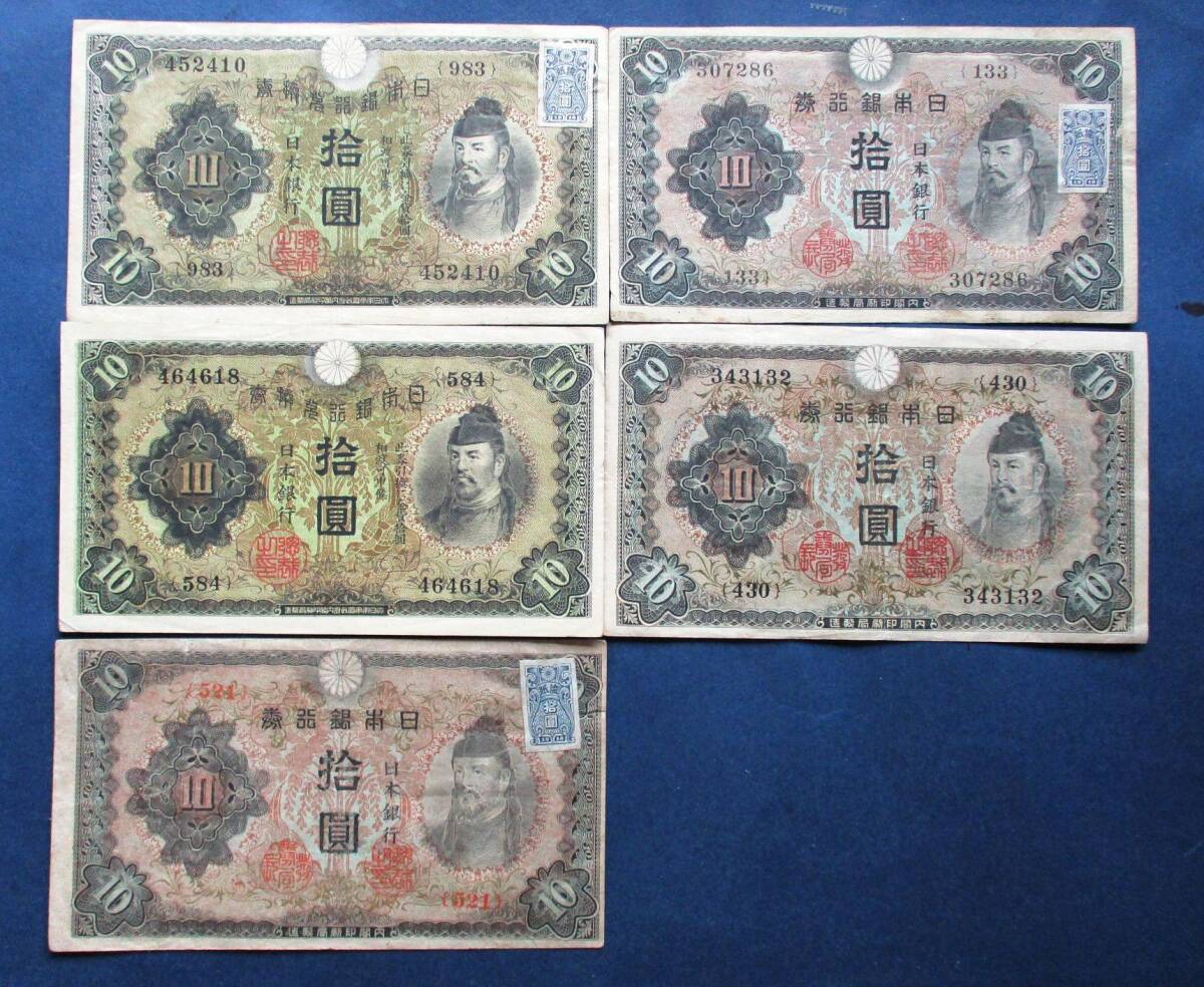 - 日本紙幣 1次~3次10円紙幣(証紙付き2枚含む) EE45 画像参照してください。
