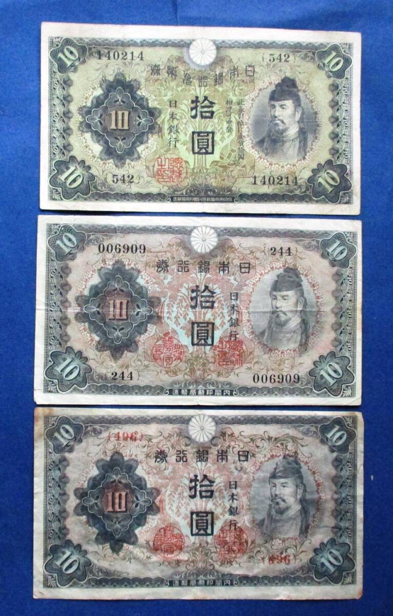 - 日本紙幣 1次~3次10園紙幣 3種3枚 EE58 並品 画像参照してください。