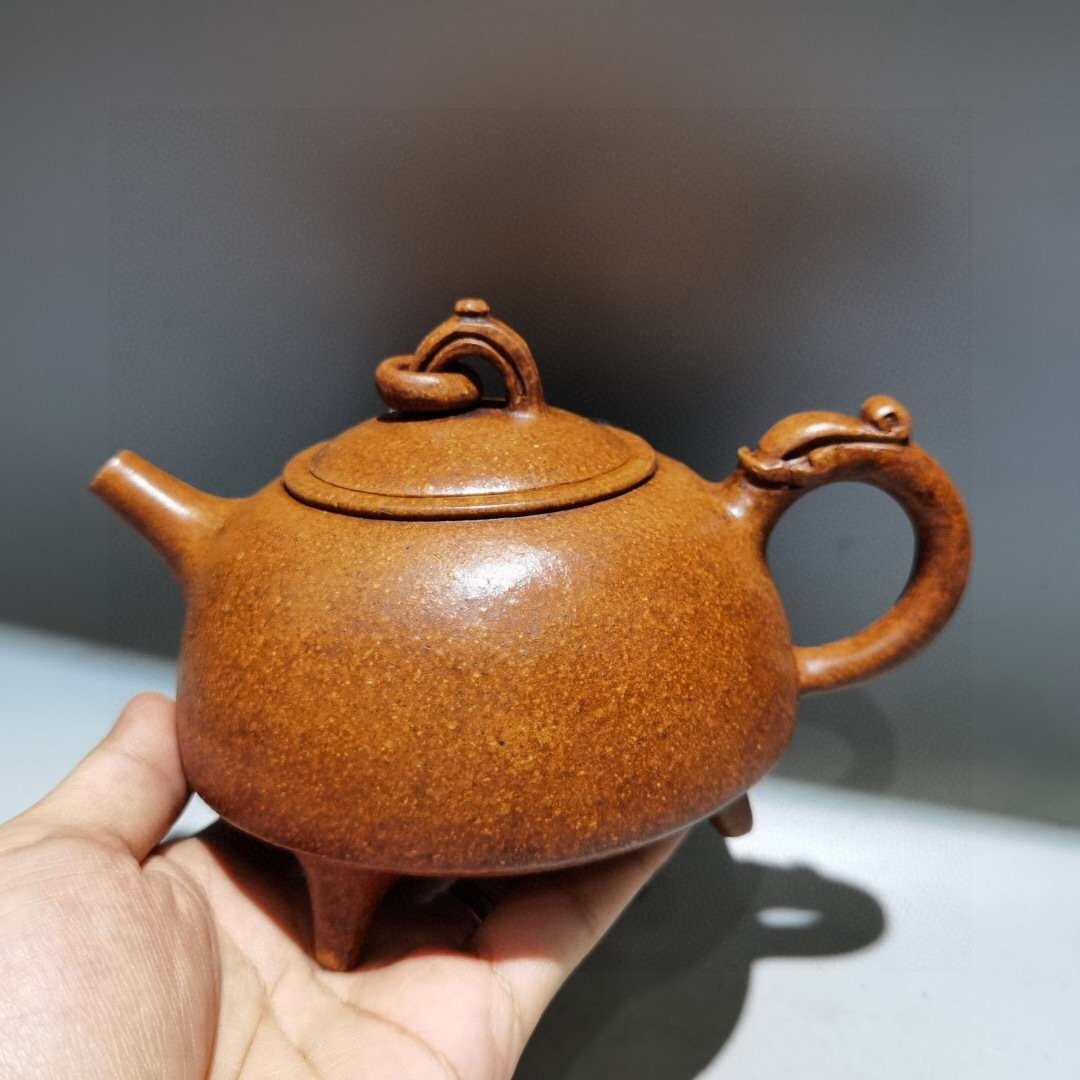 - 【超珍館蔵】紫砂壺 環龍三足壺 顧景舟款 龍骨金砂 茶具 茶道品 置物 賞物 古賞物 古董品 古美術品 時代物 旧家蔵出 稀少珍蔵品
