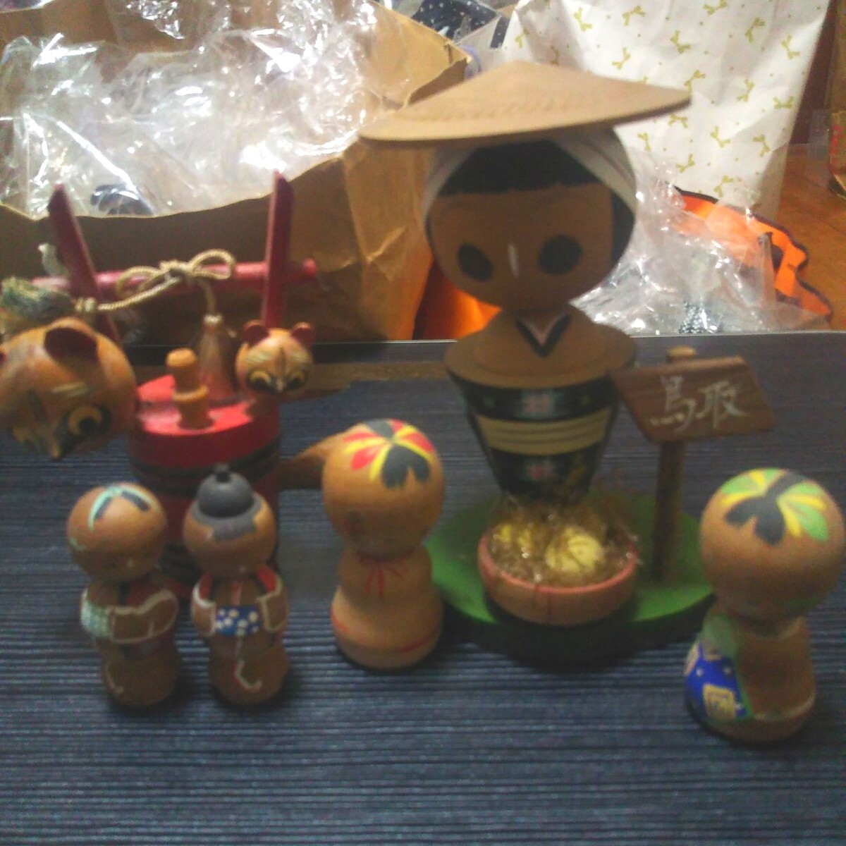 - 昭和レア物オシャレ飾りこけし置物2つと小さめこけし人形4個です。 昭和