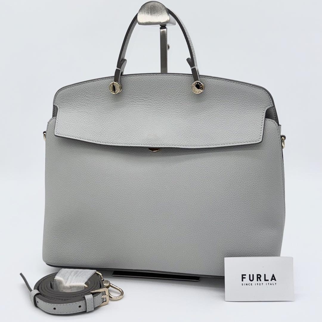 - 【極美品】FURLA フルラ MyPIPER マイ パイパー ハンドバッグ 2way ショルダーバッグ 斜めがけ フォーマル レディース グレー EB010716C
