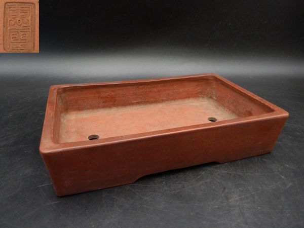- コレクター買取品 在銘 朱泥長方形鉢 植木鉢 盆栽 中国美術H104