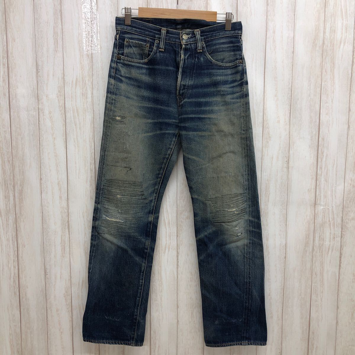 - DENIME ドゥニーム デニムパンツ ストレート ジーンズ ダメージ加工 ボタンフライ メンズ YF437