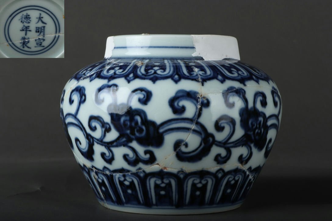 - ◆羽彰・古美術◆Y4128大明宣徳年製 青花纏枝蓮紋罐・古陶磁器 ・珍品旧蔵・古賞物・時代物