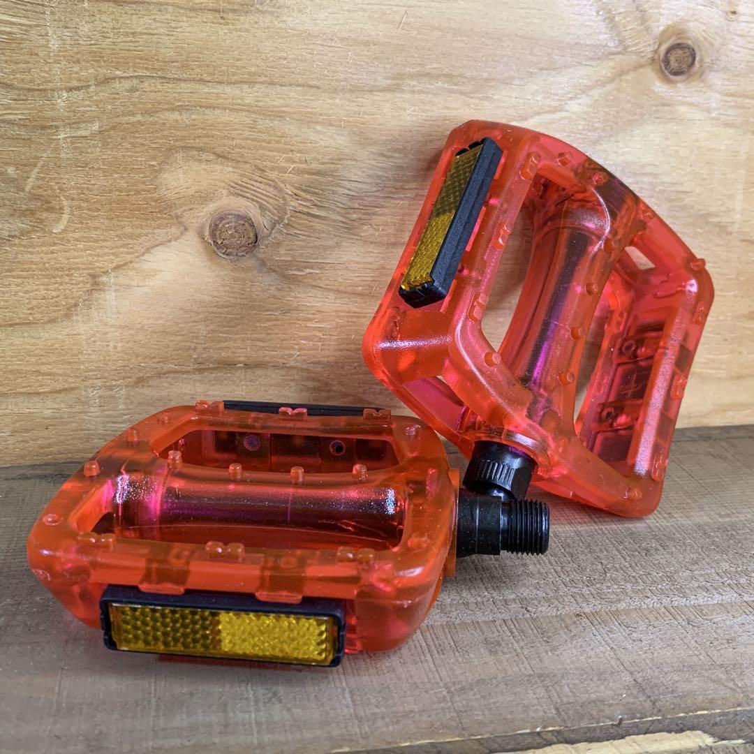 - 【新品】ナイロンペダル スケルトンピンク フラットペダル クロスバイク ピスト ピンク