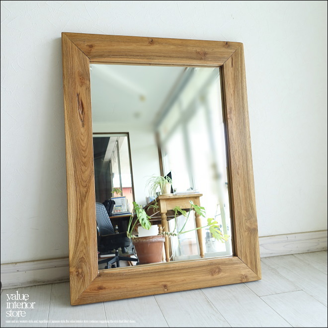 - 古材 鏡 壁掛けミラー オールドチークミラー壁掛80/E02 レトロ 無垢材 古材家具 自然な様 無垢材家具 W60 x H80cm