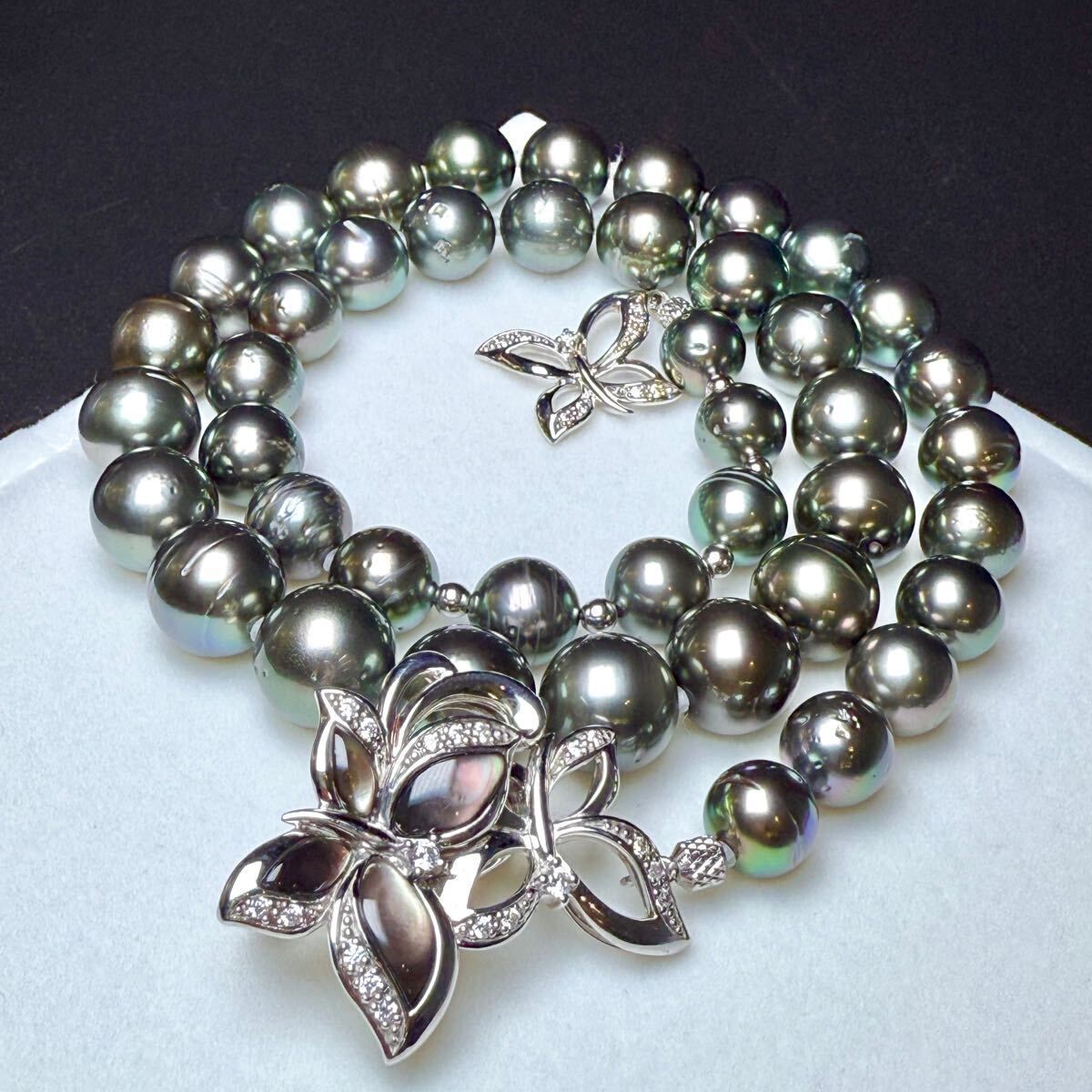 - オーロラ級 黒蝶パール ネックレス 8.1〜10.7㎜ 48㎝ 63.7g 南洋真珠 クロチョウ バタフライ金具 SV925刻印 ピーコックグリーン