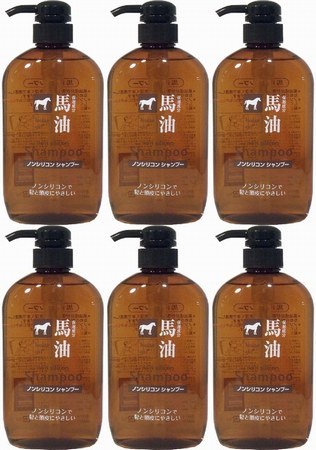 - 6本 馬油ノンシリコンシャンプー 600mL 男女兼用です。髪、お肌にやさしい弱酸性です。髪の奥深くまで浸透し、なめらかな指通りに!