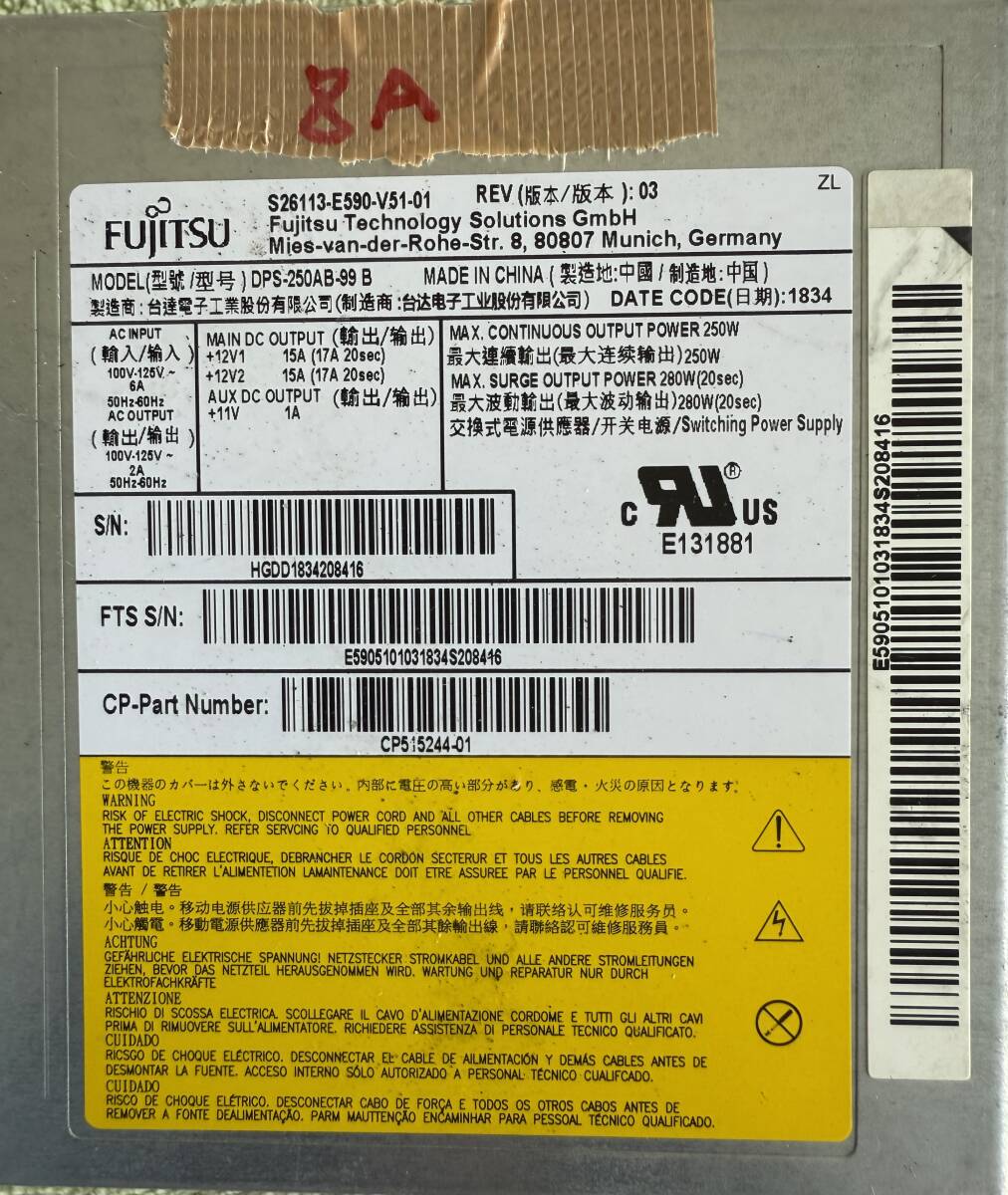- FUJITSU 電源ユニット DPS-250AB-99B 250W 中古