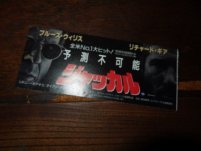 - 映画半券「y635 ジャッカル 予測不可能(ペアチケット・1枚のみ)」ブルース・ウィリス リチャード・ギア