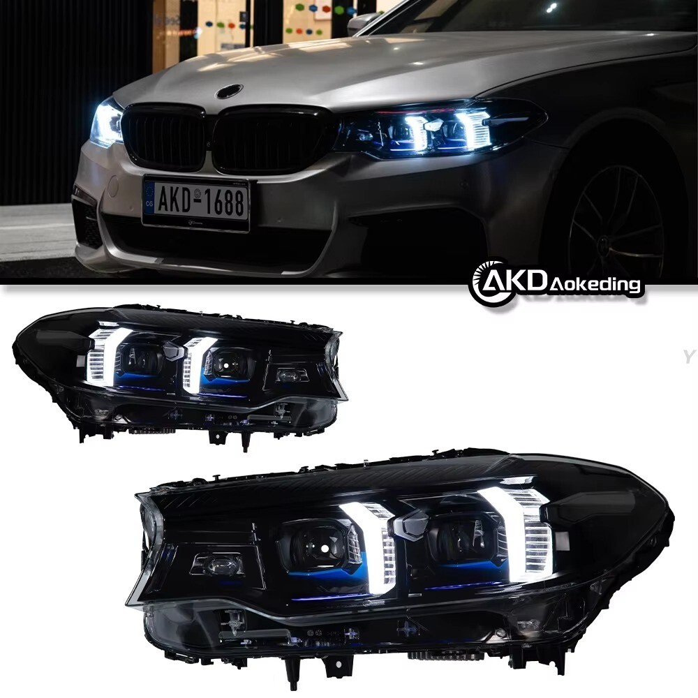 - 【送料無料】 ヘッドライト LED スモーク 現行風 BMW 5シリーズ G30 G38 M5 2017-2021 アセンブリ エンジェルアイ フロント デイライト